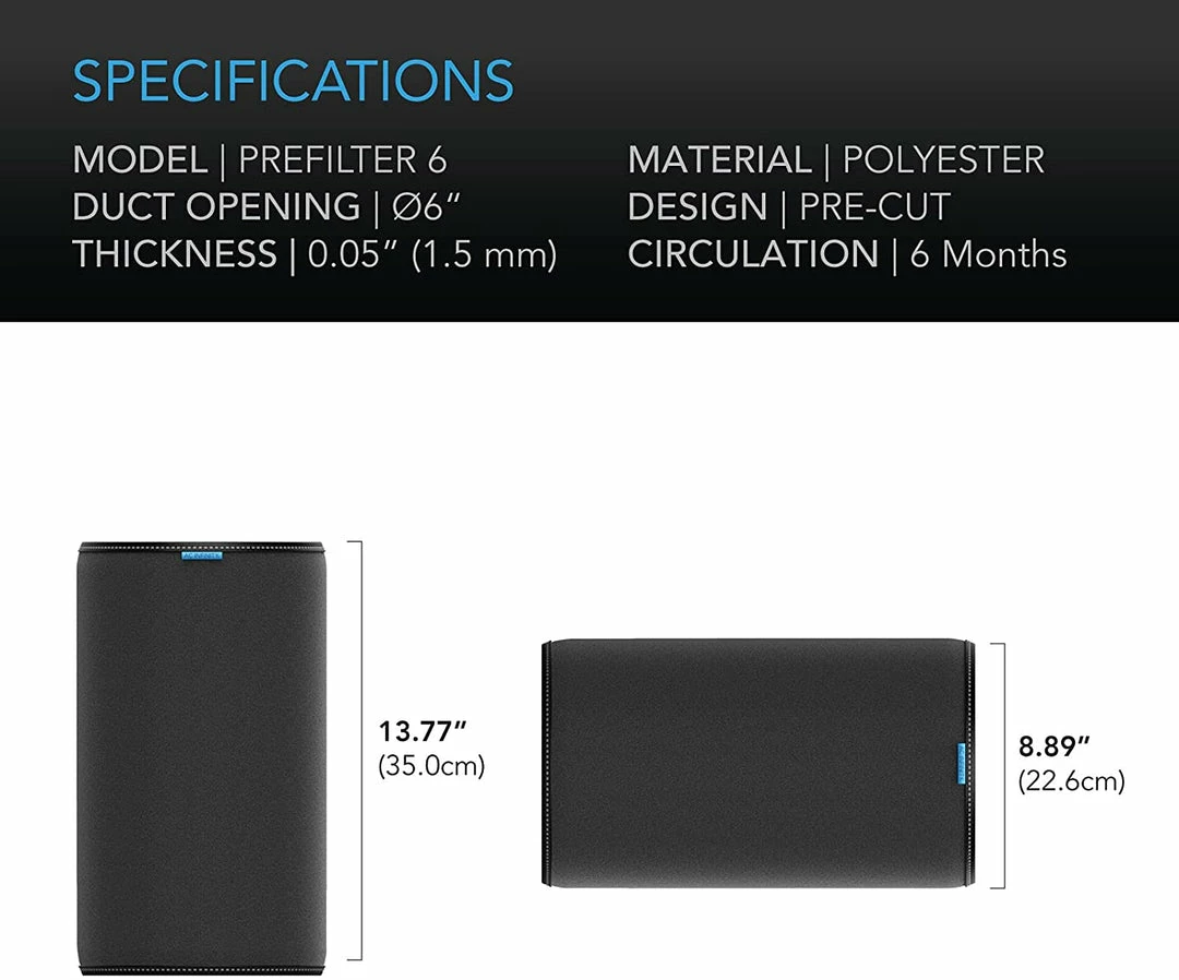 This ensures that your carbon filter properly traps odors in its activated charcoal and refines the air when used with an inline duct fan. The breathable prefilter cloth is machine washable and is long-lasting, reusable up to six months between cleanings. Vacuum the prefilter to remove the dust before throwing it into the washer, and hang dry the cloth to prevent shrinking.