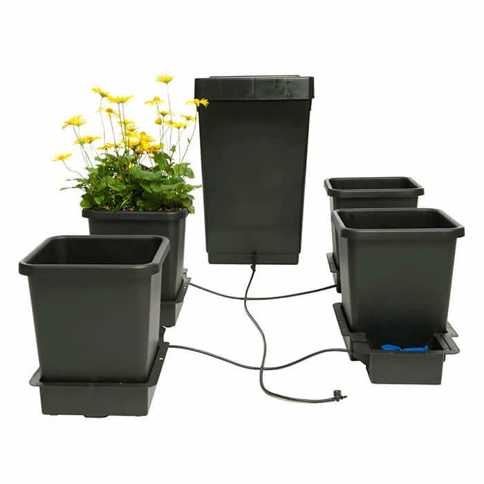 The 4Pot & 4Pot XL System is easily extended so many pots can be linked to a single reservoir. Please see examples of typical layouts using 3/8โณ pipe or 1/2โ pipe in the image gallery. The pots & trays can be easily moved at will, if the plants grow too large they can be spaced further apart with ease. Once set up and a reservoir is filled with water & liquid feed this extremely versatile system will completely take care of all your plants needs