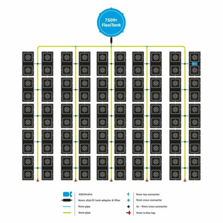 The easy2grow System is easily extended so many pots can be linked to a single reservoir. Please see examples of typical layouts using 1/4โณ pipe or 1/2โณ pipe in the image gallery. The pots & trays can be easily moved at will, if the plants grow too large they can be spaced further apart with ease. Once set up and a reservoir is filled with water & mineral liquid feed this extremely versatile system will completely take care of all your plantโs needs.