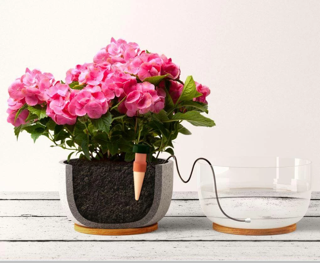 As the soil dries, a ceramic cone gradually delivers water into the surrounding dirt, which creates a vacuum within the cone that draws water from a nearby container of water. And once the soil reaches a desired moisture level, the Blumat Junior will stop pulling in water. You can even add fertilizer to the water supply โ slow, continual feeding encourages prolific plant growth.