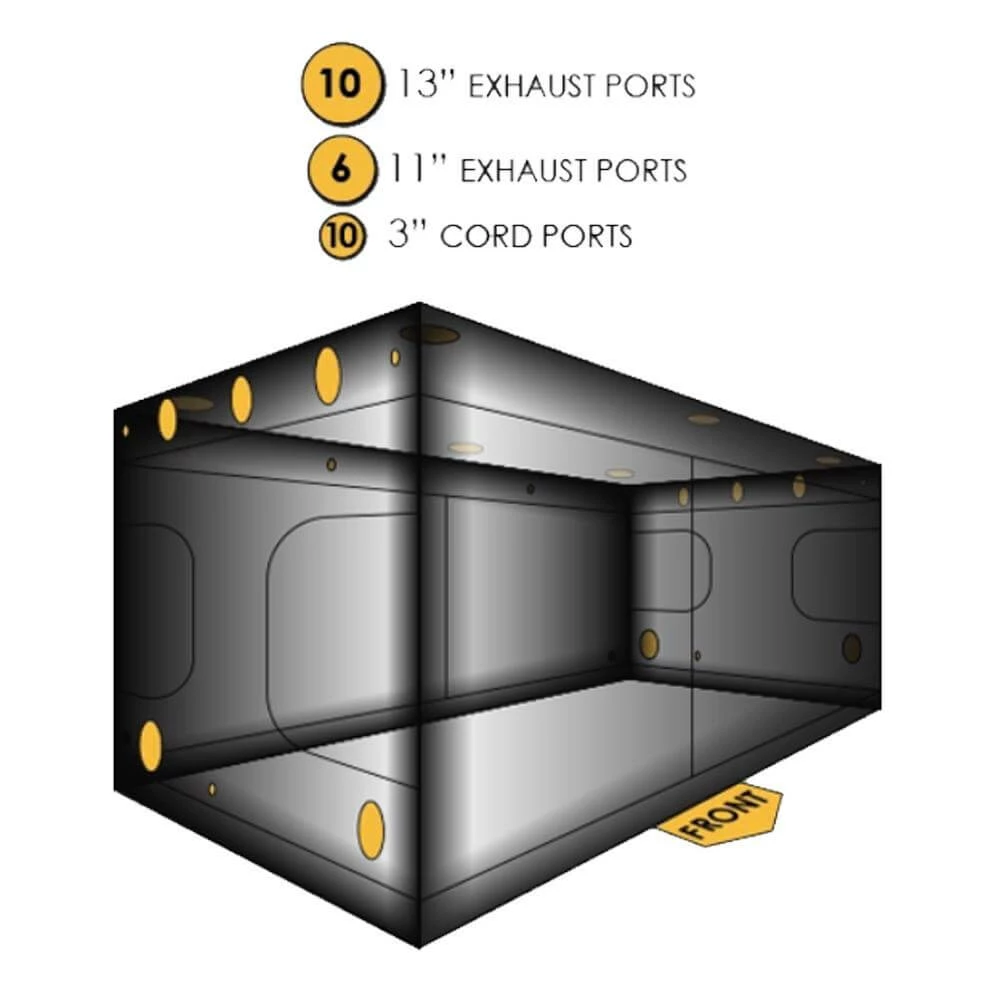 - Made with 1680D threaded, reflective fabric – up to 9x denser than any other grow tent