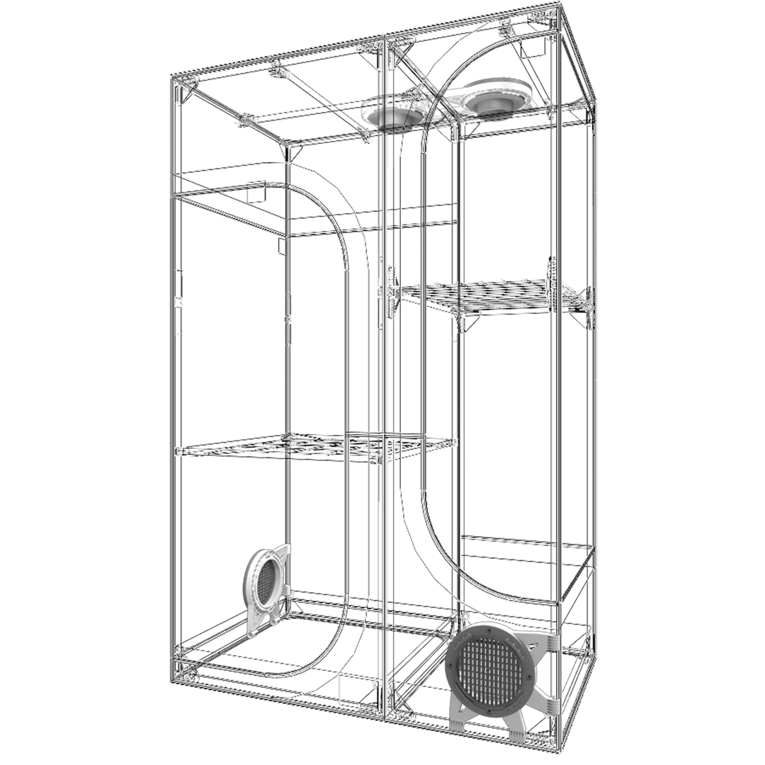 The Lodge R4.00ย is built with high quality materials, it brings professional standards to small tents users. Thanks to its design it also offers a propagation area for growing, cuttings and hosting mother plants.